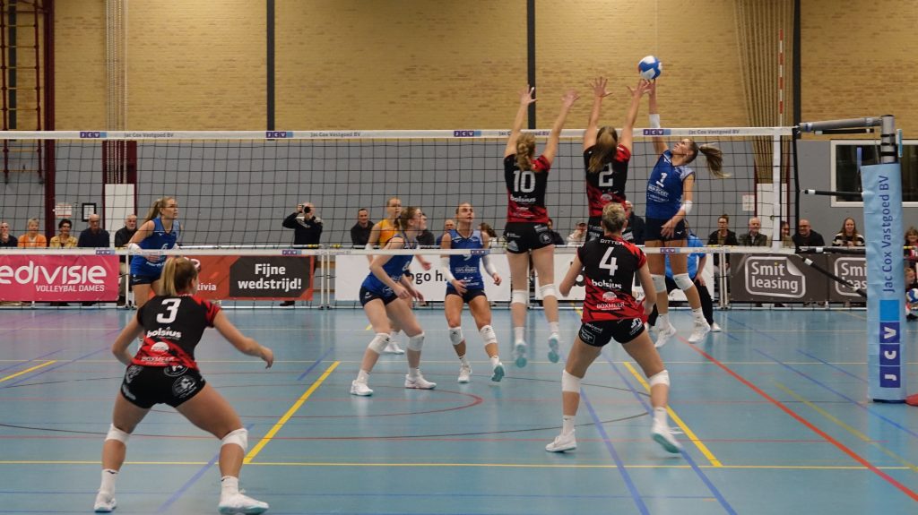 De sterke aanvalsters van Sliedrecht Sport sloegen rake klappen die door de Brabantse meiden keer op keer van de grond gehouden werden. Zo kreeg Jill Weeda misschien wel de mooiste redding van de avond op haar naam. Op 23-21 leek een verrassing mogelijk. Toch haalde Sliedrecht op het laatst meer punten binnen en won met 24-26.