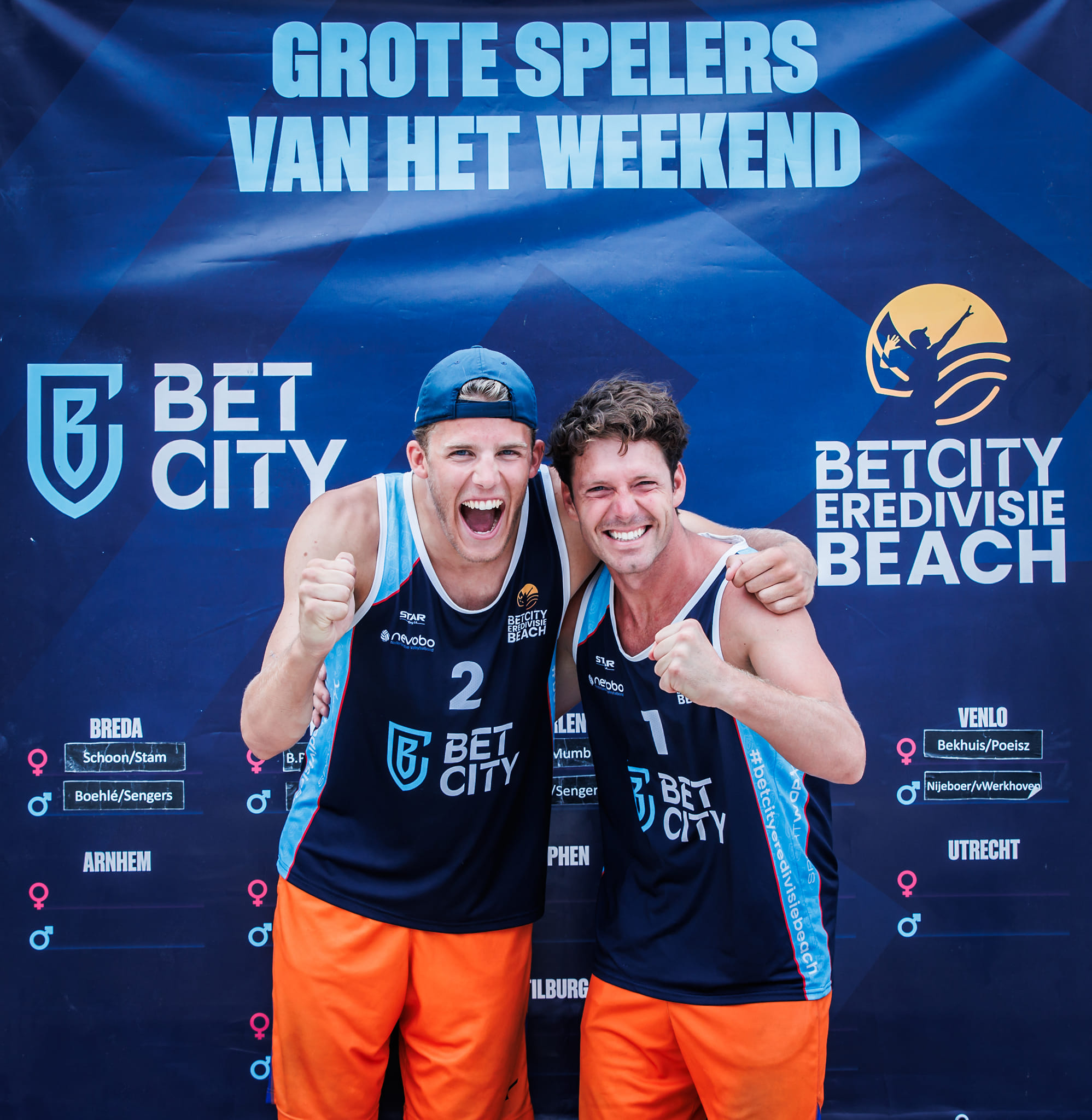 VoV, 10-07-2023. 5:20 uur. De Eredivisie beach in Almelo werd bij de dames afgelopen weekend gewonnen door het duo Bekhuis/ Poiesz en bij de mannen door het duo Boehlé/ Sengers. Beide teams hoorden vooraf bij het selecte groepje favorieten voor de zege en maakten hun favorietenrol helemaal waar.