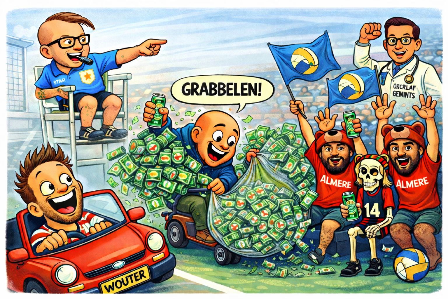 VoV, 12-03-2026. 10:22 uur. UH-UH-UH deed Wouter’s wekker om kwart over zes. Hij was ‘m vergeten uit te zetten terwijl het weekend was. Het begin van een lange dag. Zelfs voor een lange man. Met Gemini S heren 1 had hij ’s middags een wedstrijd. Hij zou nog even snel zijn enorme station auto langs garage Van Leeuwen brengen. “Het is iets kleins en zal wel meevallen” herhaalde Wouter de opmerking van de oude baas. Saskia had zich voorgenomen: ‘zich geen zorgen te maken, maar ze wist ook… zoals elke dag met Wouter….: “Woutje,” zei ze, “Doe je wel voorzichtig?” “Tuurlijk liefje, ik laat m’n team even weten dat ik met eigen vervoer ga. Dan doe ik garage van Leeuwen aan op weg naar Diemen. “Weet je, ik ga wel extra vroeg, als er dan toch iets onfortuinlijks gebeurt, dan heb ik nog alle tijd. Ik bedoel, je weet het maar nooit met mij. Wat kan er in hemelsnaam mis gaan?” Saskia keek naar de lege kinderstoel. “Ja, klopt schatje.” Maar Saskia dacht vooral: ‘wat kan er niet misgaan?’ BAM! Een harde klap van de voordeur die Wouter achter zich dicht trok. En daarna nog een geluid. Saskia keek de gang in en zag het schilderij wat al vier generaties in haar familie was op de grond liggen. Het leek zacht gevallen en nog onbeschadigd. Voordat ze naar het schilderij kon lopen ging de deur alweer open: “Tas vergeten” mompelde Wouter, en zonder te kunnen waarschuwen, zag Saskia de maat eenenvijftig zevenmijlslaars van Wouter, dwars door het doek scheuren. Wouter verzwikte daarmee zijn enkel: “Ouch!” Ze keken elkaar aan, Wouter en Saskia. “Ik heb nog wel even tijd voor ons nummertje.” Zei Wouter. Hand in hand gingen ze op de bank voor het raam zitten, keken naar de kersenbloesem in de voortuin, en Saskia drukte bij de cd speler op ‘play’. Daar zaten ze naast elkaar op de groene bank, terwijl ze ‘hun nummertje’ (hard to say i’m sorry – chicaco) voor de volle 3:45 min afspeelden. Wouter stond op en beende snel naar de deur. ‘Krak’ deed de antieke schilderij lijst in de gang toen Wouter er overheen walste. Wouter reed in de stationcar zoals de navigatie hem dirigeerde. (KEER OM) Wouter parkeerde en deed zijn gordel los, ging vervolgens met zijn billen op het stuur zitten en hield met zijn handen de bestuurders stoel vast. Na een minuut of twintig vond hij het mooi geweest en zag dat de route weer voorwaarts was. Onderweg keek hij door zijn gebarsten raam naar verbouwingen in de mist, naar droogliggende slootjes, prikeldraadhekjes waar de paaltjes hier en daar eerder aan het prikkeldraad hingen, dan dat ze het omhoog hielden. Een beige grijs schaap met harde donkere klodders in de vacht probeerde haar kop los te trekken uit de emmer die eromheen zat. Wouter reed voorbij en hoorde op de radio een hoop geruis. Op een andere zender hoorde hij het nieuws: ‘het gaat slecht met de boom. In het bijzonder de els. Dit is wegens aanhoudende droogte. Verder is de komkommeroogst voor ongeveer 40% mislukt’. Wouter zei tegen zichzelf: “Erik had wel geweten hoe hij dit nieuws zou noemen.” Grinnikend om zichzelf parkeerde hij bij garage Van Leeuwen. Wouter schopte een brok asfalt weg maar dit stuiterde op en kaatste hard tegen een rode sportwagen met een paarden embleem. Het hinderde hem niet. Hij liep door en had zin in de wedstrijd later die dag. Op het moment dat hij de showroom binnenstapte en nonchalant zijn autosleutel omhoog gooide, sprong er uit het niks een autoverkoper achter een SUV vandaan: “Goedemorgen meneer! Zoekt u een lekkere nieuwe wagen?” Wouter schrok en keek waar de stem vandaan kwam. Op dat moment was hij, heel kort, zijn nog in de lucht zwevende autosleutel uit het oog verloren. Toen hij deze alsnog wilde vangen, stuiterde hij op zijn duim, graaide er nog naar alsof hij de statiegeldgraaier was, maar miste. Na een plonsje zakte ’t langzaam tussen de waterplanten van het aquarium. “Hè, verdomme nog aan toe zeg.” Klonk Wouter geërgerd. De autoverkoper keek hem met grote ogen aan: “Ben jij…” Wouter luisterde niet en stak met een plens zijn arm tussen de vissen en plastic nepstenen. “Ja ik heb hem, en m’n mouw is nat, en mijn trui ook nog…godsakke” hij gaf de druppende sleutel aan de verkoper. Wouter ergerde zich een beetje aan de man. Hoe de man hem aankeek. In een goedkoop pak en met zijn lange haren als camouflage van de zijkant over zijn onmiskenbaar spiegelgladde kale kop gekamd. “Wat is het probleem met de auto?” Een derde (oudere) persoon voegde zich bij het gezelschap en aan de overal en zwarte vettige handen leek het iemand van de werkplaats. “De sleutel is in het aquarium gevallen” zei de bijdehante vent met zijn overkammer. Monteur: “Wat een geluk dat je dan nu bij een autogarage bent. Ik ga kijken wat ik kan doen. Zoek jij maar een mooie leenauto uit.” De monteur bewoog een zwarte hand naar de showroom met sportwagens, SUV’s en andere auto’s van meer dan een ton. De overkammer verkoper staarde naar Wouter en zei: “Je kunt uit alle auto’s met een blauwe sticker kiezen. Zoek maar wat uit.” Wouter las op het naambordje van de verkoper: Pim afd. verkoop, en zei: “Ok Pim, ik kijk wel even. Wouter liep rustig tussen de mooie wagens door en glunderde. Wat zouden zijn teamgenoten zeggen als hij in een elektrische 911 aan kwam rijden. En zou zo’n kapsel, als die man hier had, ook bij zijn kalende teamgenoten Bram of Bas staan. Verkoper Pim kwam achter hem aan, terwijl hij een mapje in zijn hand hield: “Ga je naar huis zo, of wat eeh, ga je doen?” Wouter: “Volleyballen, we moeten in Diemen tegen Smashing ’95.” De verkoper bewoog wat onrustig en zei: “Het is niet waar, Diemen, en ook volleyballen hmm, daarom ben je zeker zo lang?” Zonder op antwoord te wachten draaide hij zich om. Met het mapje stijf onder zijn arm geklemd. Wouter zag rode BMW X3’s, blauwe M4’s, een gele Audi RS3 in de hoek en een zwarte Tesla (model S). Echter, geen van ze, had een blauwe sticker