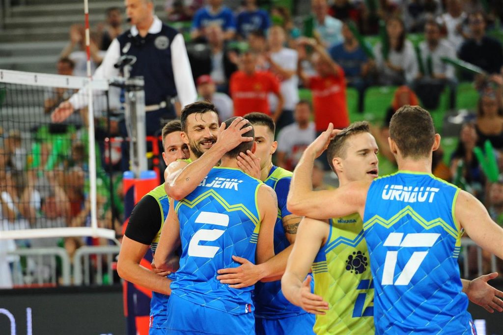 De thuisploeg (foto boven) hield de gasten voor zo’n 4.500 toeschouwers drie keer onder de twintig. Urnaut, Gasparini en Kozamernik maakten ieder een dozijn punten voor Slovenië. Dat vooral aanvallend veel sterker was getuige de 46 / 23 score.