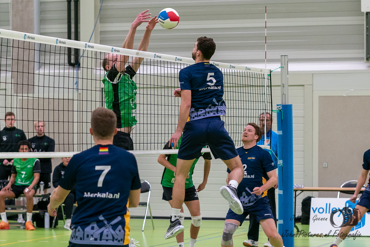Voor volleybalfotograaf John van Geenen uiteraard en prima gelegenheid om bij dit duel aanwezig te zijn voor een mooie aansprekende fotoreportage. Dat het thuisspelende Zaanstad er in drie sets met de punten vandoor ging, gaf de reportage extra glans.