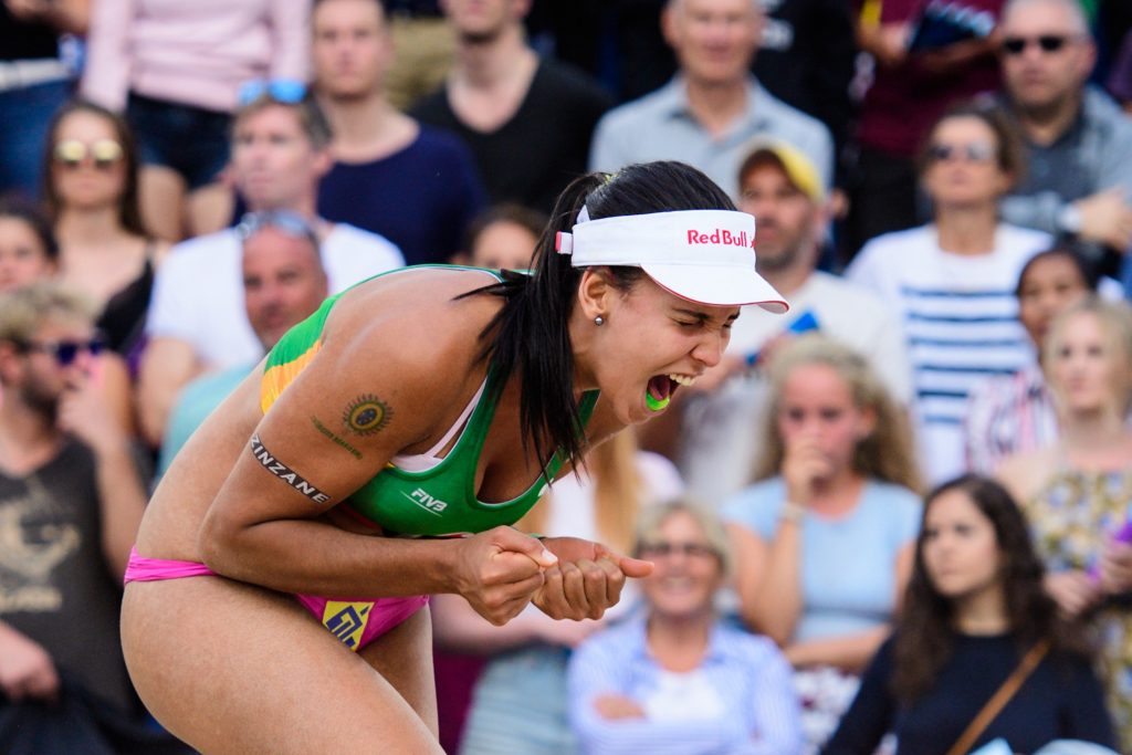 Nog harder kwam de afloop van de tiebreak aan. Na de 1-4 voorsprong in de openingsfase voor Duitsland namen de Braziliaanse dames het initiatief over, en maakten het winnend verschil nadat ze bij 8-7 voor de derde keer van speelhelft waren gewisseld. Het werd via 12-8 een 15-9 zege voor Brazilië. De halve finale vanmorgen wordt een Braziliaans onderonsje met Agatha / Duda aan de ene kant van het net en Maria Antonelli / Carol aan de andere kant.