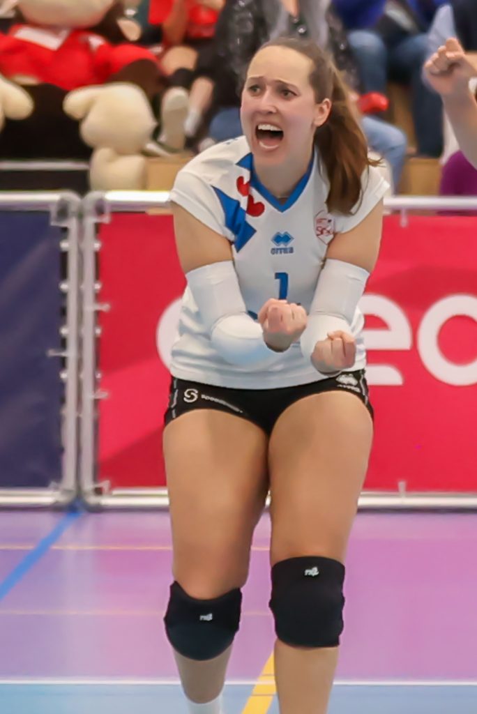 Mooie stap: Een meer dan tevreden gezicht bij coach Erik Reitsma die zijn ploeg zag groeien. De roodhemden- zonder iris Oosterbaan en Rixt van der Wal – toonden een mooie stap en lijken op het juiste moment de vormen van een flow te hebben gevonden. Toch is enige terughoudendheid op zijn plaats natuurlijk al smaakt de overwinning op Utrecht bijzonder goed.