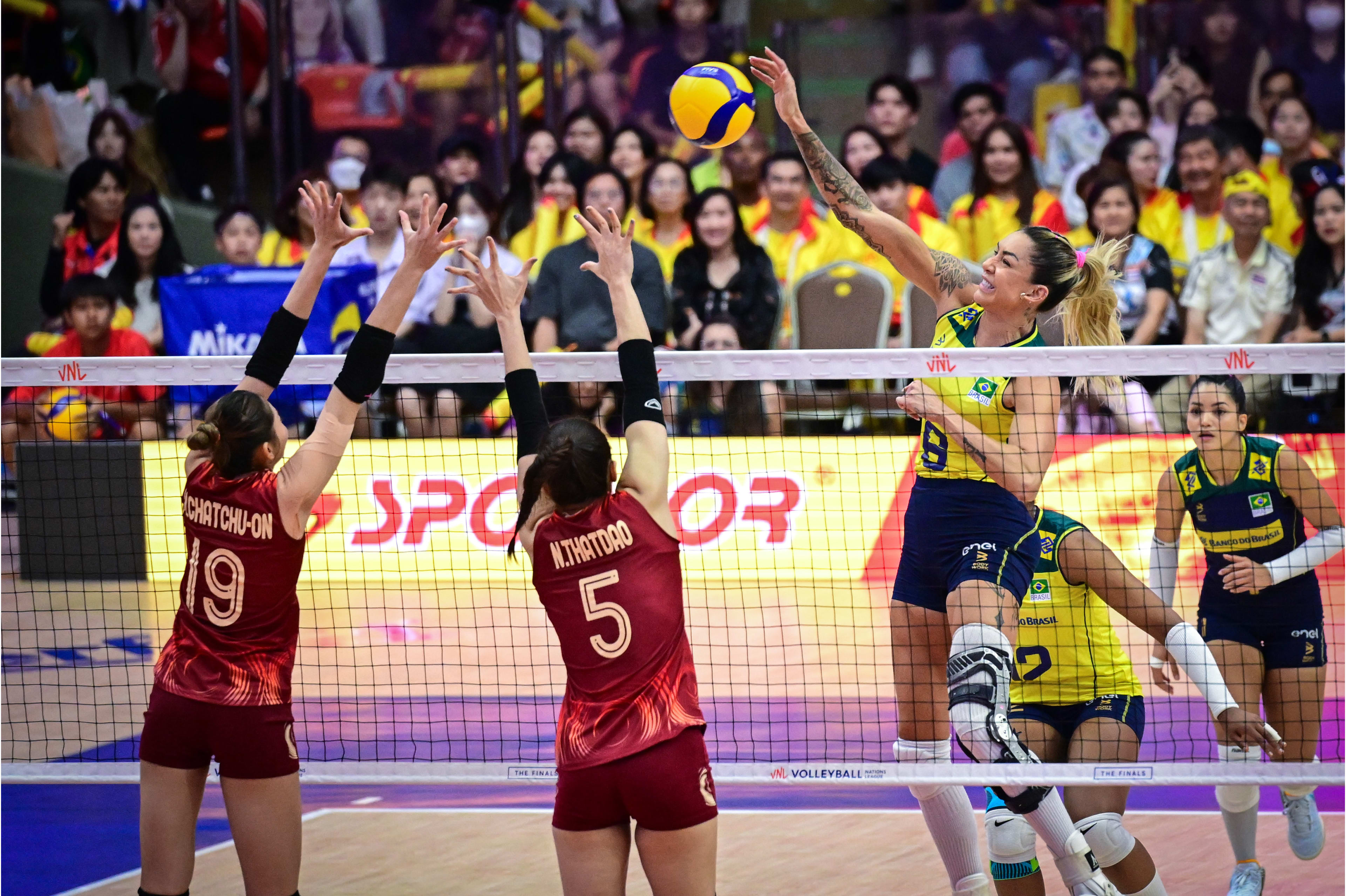 Gastland Thailand bood stevig verzet tegen het in de poulefase van het VNL-toernooi bij de dames ongeslagen gebleven Brazilië. De eerste set werd met 21-25 door Brazilië gewonnen, daarop volgden zeges met 20-25 en 23-25. Maar makkelijk was het niet.