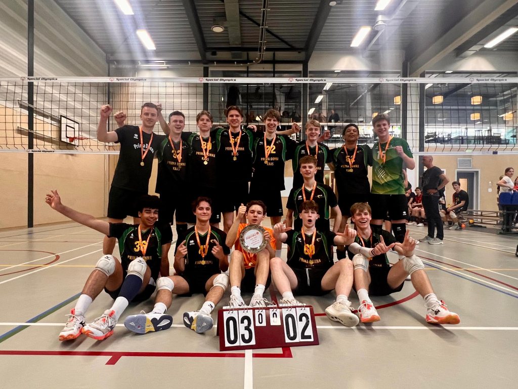 Utrecht kreeg zelfs nog twee matchpoints maar wist deze niet te verzilveren. De zenuwslopende wedstrijd eindigde uiteindelijk in een 21-19 stand, in het voordeel van Prima Donna Kaas Huizen. Complimenten voor beide teams, wat een wedstrijd. En uiteraard de felicitaties voor onze Jongens A1 die na afloop de schaal in ontvangst mochten nemen.