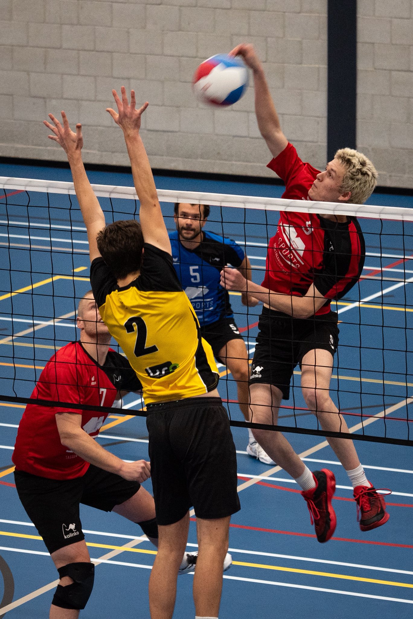 Set 1: Beide teams tastten elkaar in het begin af en zochten elkaars grenzen op. De bezoekers probeerden via hun snelle midden en lange diagonaal de thuisploeg te breken, maar de verdediging van Kalinko stond als een huis. Jeroen wist samen met de overige aanvallers stand te houden. De stand bleef lang gelijk, met hooguit een punt of twee verschil.