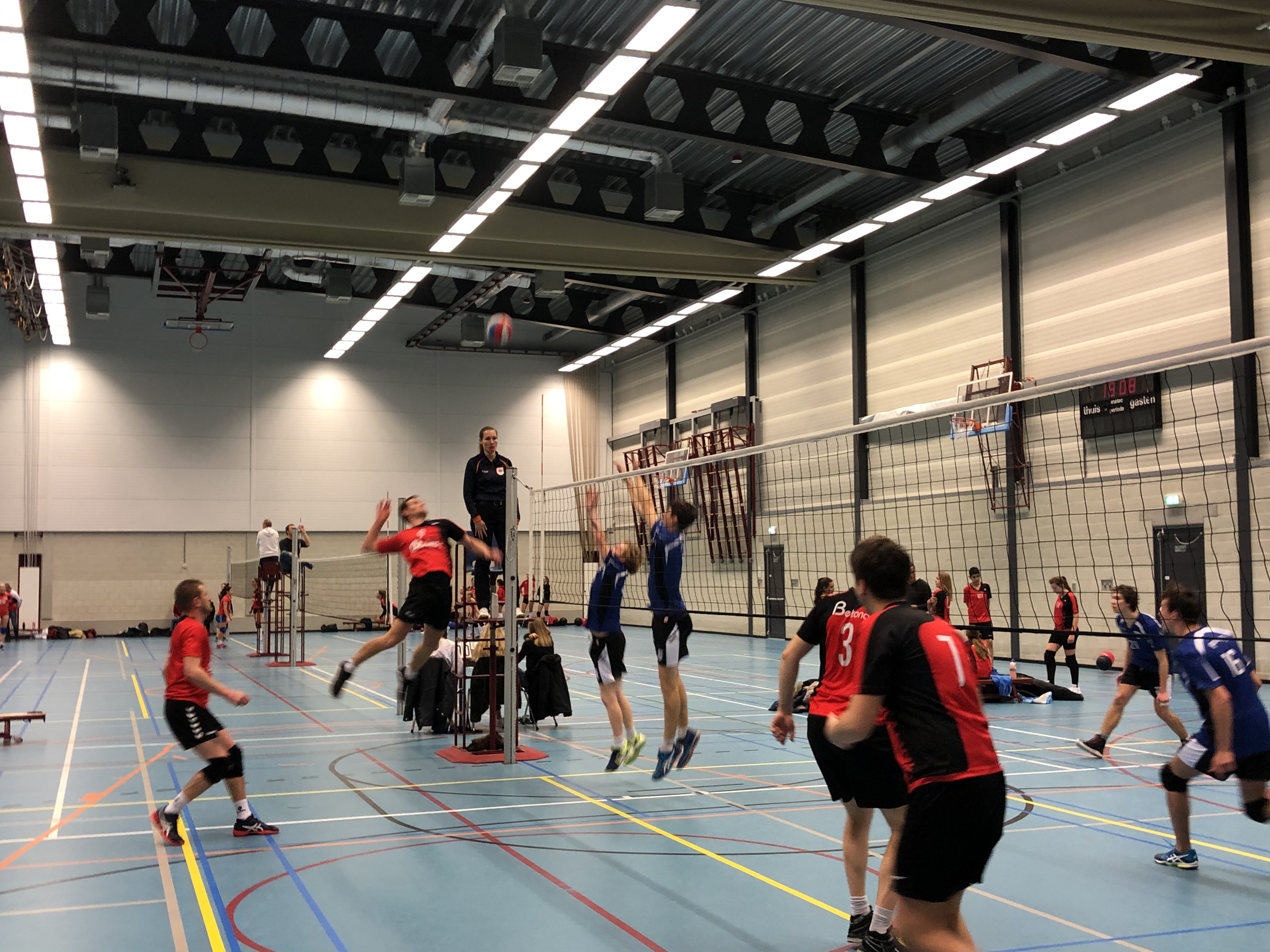 De mannen van Kalinko traden vol vertrouwen aan in de thuishal op ‘Kalinko’s Super Saturday’. Na een prachtige service van “Mini van de Week” Mathieu begonnen ze echter stroef aan de eerste set. Punch nam al snel een voorsprong van enkele punten en wist deze tot halverwege de set vast te houden. Langzaam kwam de thuisploeg echter op stoom en werd een Scheveningse muur opgetrokken aan het net, waardoor de tegenstander grote problemen had om tot scoren te komen. Het lengtevoordeel van Kalinko resulteerde ook in niet te stoppen aanvallen. Vanaf 16-16 werd een beslissend gat geslagen waarna de set met 25-19 werd gewonnen.