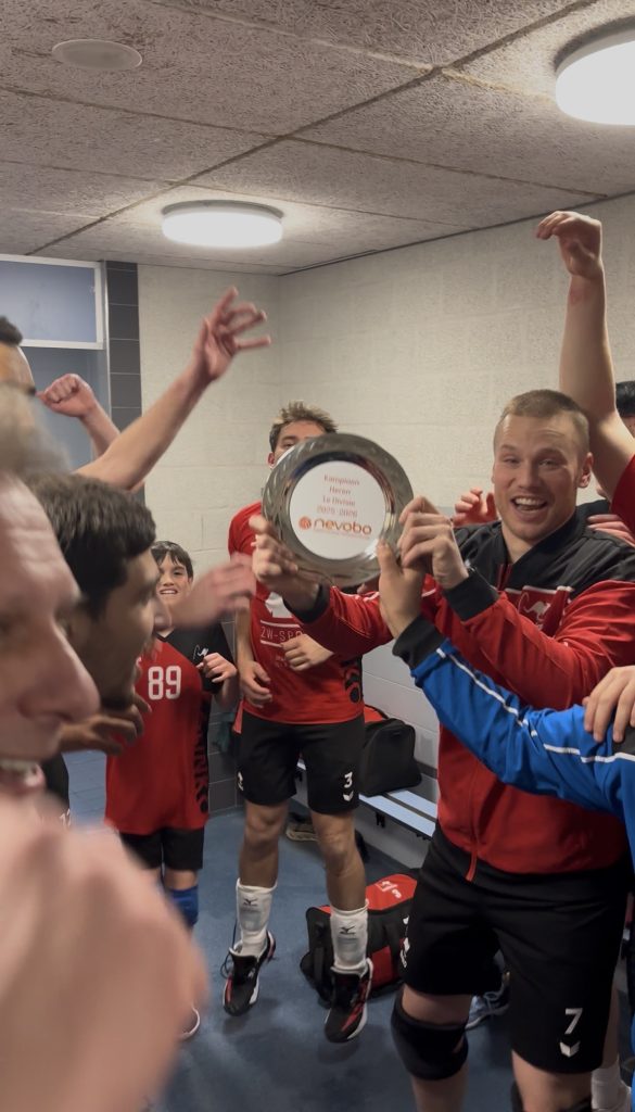 Gelukkig hoefde Kalinko niet lang te wachten. VC Wik pakte direct de eerste set en dat was al voldoende om Kalinko Heren 1 tot kampioen van de Eerste Divisie seizoen 2025-2026 te kronen. Het feest barstte vervolgens los in Scheveningen. En het werd een dubbele feestdag voor de club, want ook Kalinko Dames 1 wist op dezelfde dag kampioen te worden in de Eerste Divisie.