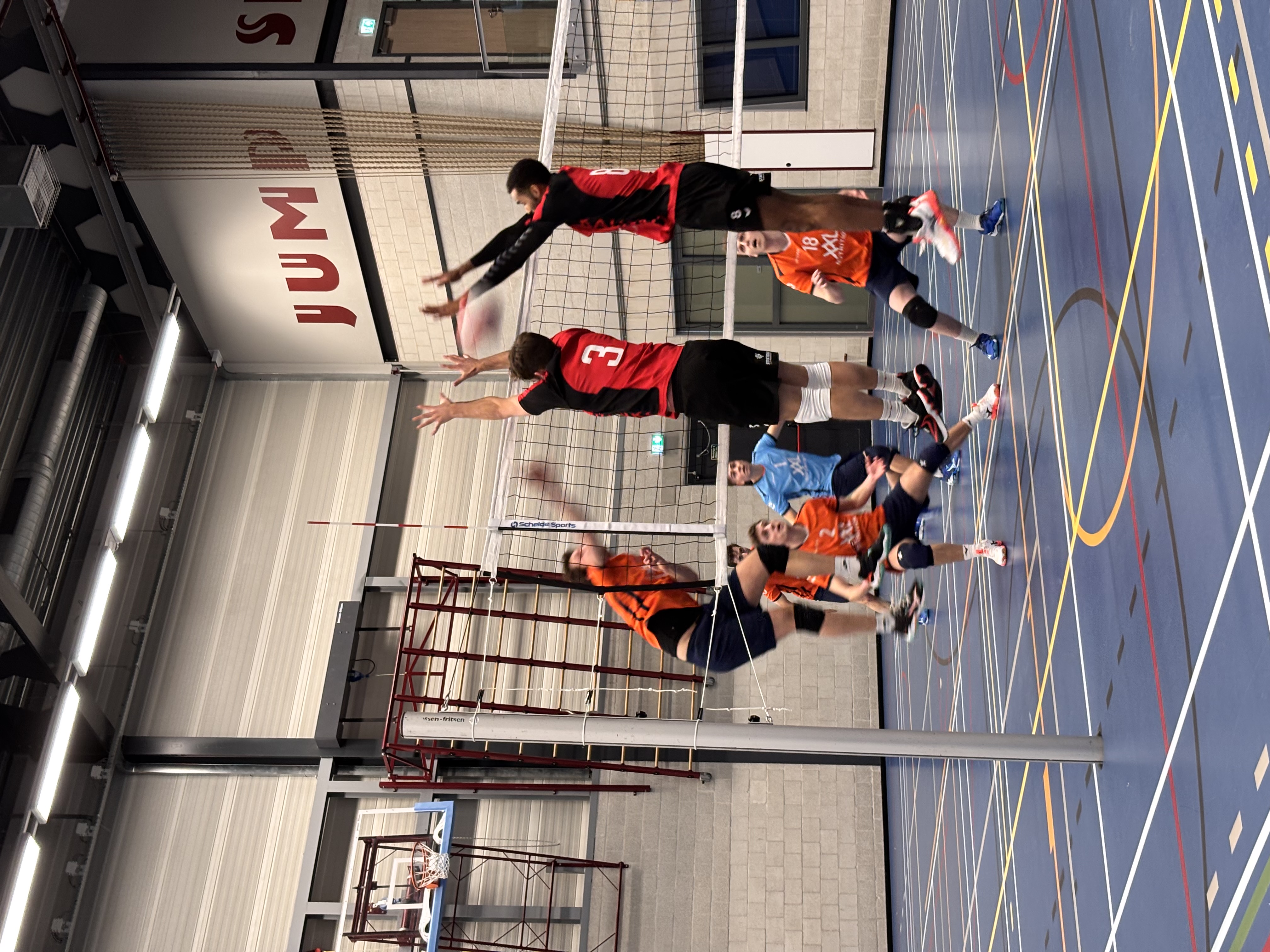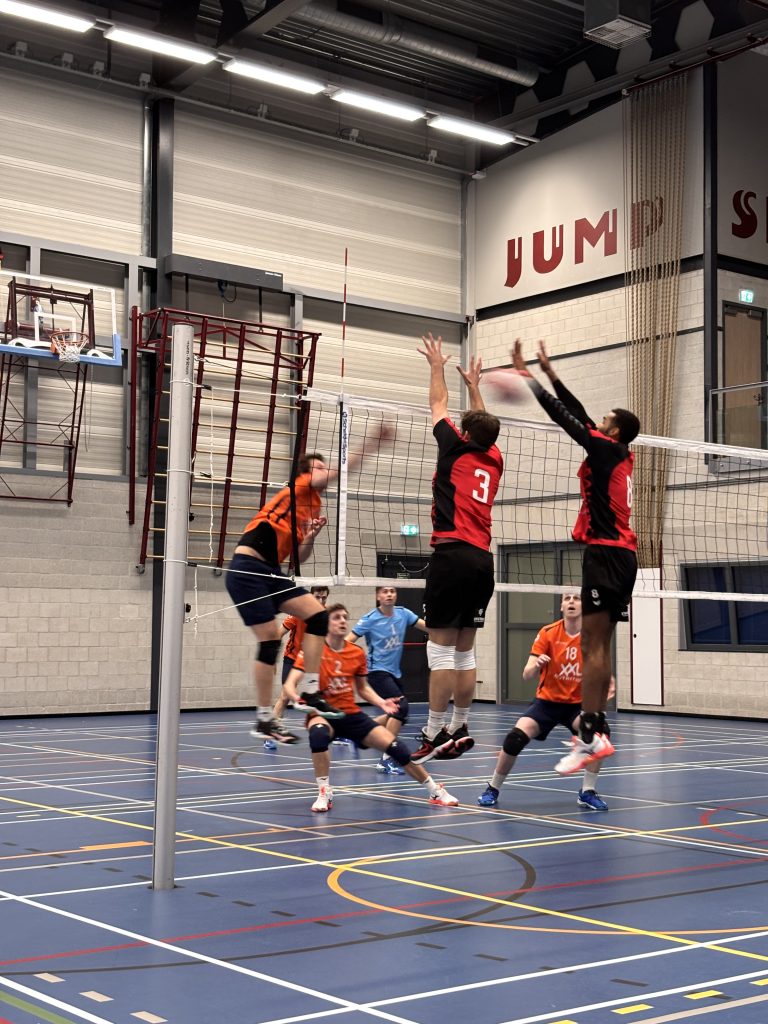 Coach Gerard startte met de volgende basis: Marijn op de spelverdelerpositie, Jeroen op de diagonaal, Mika en Dima op passer-loper, Daron en Patrick op het midden en Dennis als libero.