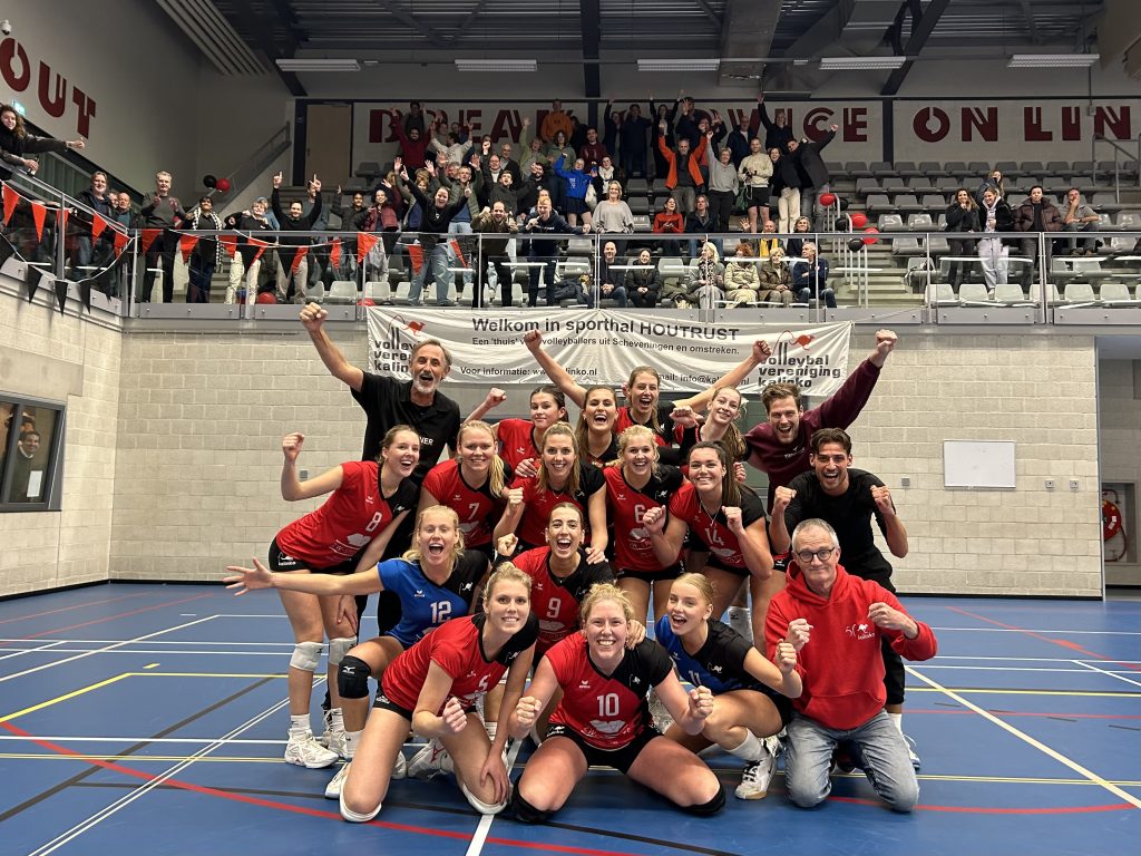 Eigenlijk kende de 3e set een identiek beeld als de tweede set. Voorsprong die als sneeuw voor zon verdween en een achterstand die weer omgebogen werd. Maar inzet en teamgeest bleef de hele tijd waardoor het een genot was om naar te kijken. Met een voortreffelijk spelende Esmee Laman die voor veel blokkerpunten en servicedruk zorgde, werd het een spannende eindfase maar ook deze set rolde de kant op van de rood/zwarten van Kalinko! 25-22. Een tussenstand in sets die je na de eerste set nooit meer had gedacht, wat een comeback!
