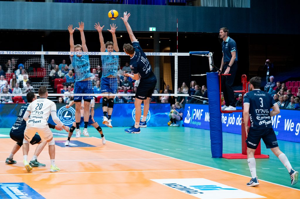 De ploeg van coach Mark Lebedew blijft derde met 23 punten uit zes duels. Zeven minder dan Roeselare en nummer twee Volley Haasrode Leuven heeft drie punten meer. Volgend weekend kan Nova Tech Lycurgus zich definitief plaatsen als beste Nederlandse club. Het verschil met nummer twee Orion Stars is met nog twee speelrondes te gaan zes punten.