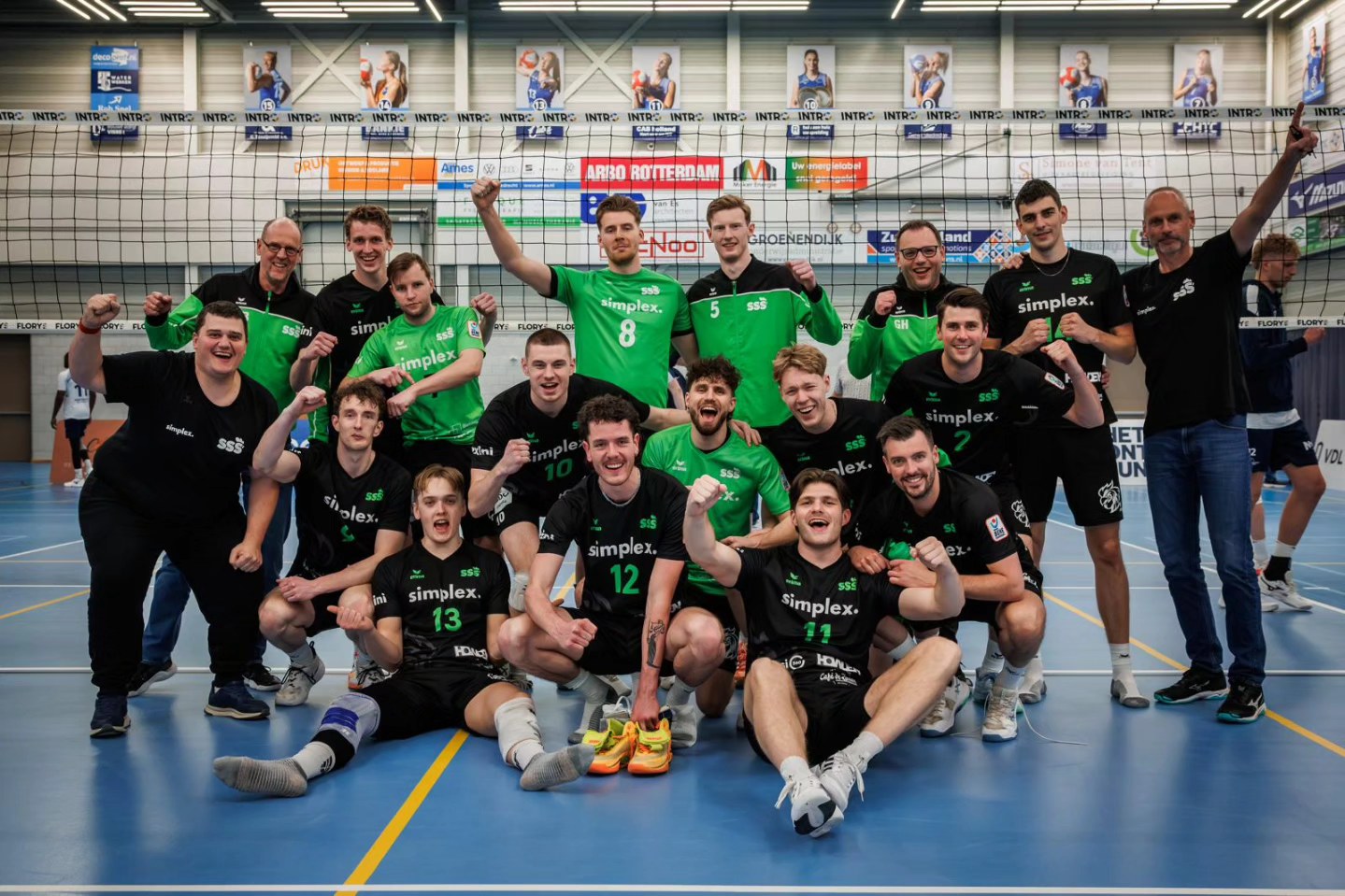 In set vier volgde na de 6-6 en 10-14 alsnog een spannende ontknoping. Sliedrecht Sport had bij 18-18 de achterstand geheel weggewerkt, ging bij 20-19 aan de leiding, maar keek bij 21-22 weer tegen één puntje nadelig verschil aan. Op de side out werd het 23-24, SSS pakte daarna de winst via een score van Stijn de Ruijter.