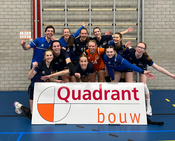 VoV, 23-03-2026. 10:46 uur.  Quadrant Bouw VTC Woerden dames 1 speelde vorige week donderdagavond om 21.00 uur thuis tegen Switch dames 2. Het werd een lange en fanatieke wedstrijd waarin Woerden na een spannende vijfsetter met 3-2 aan het langste eind trok. Met veel energie in het veld, een trommel op de achtergrond en een recordaantal van minimaal tien netfouten zat de sfeer er meteen goed in.