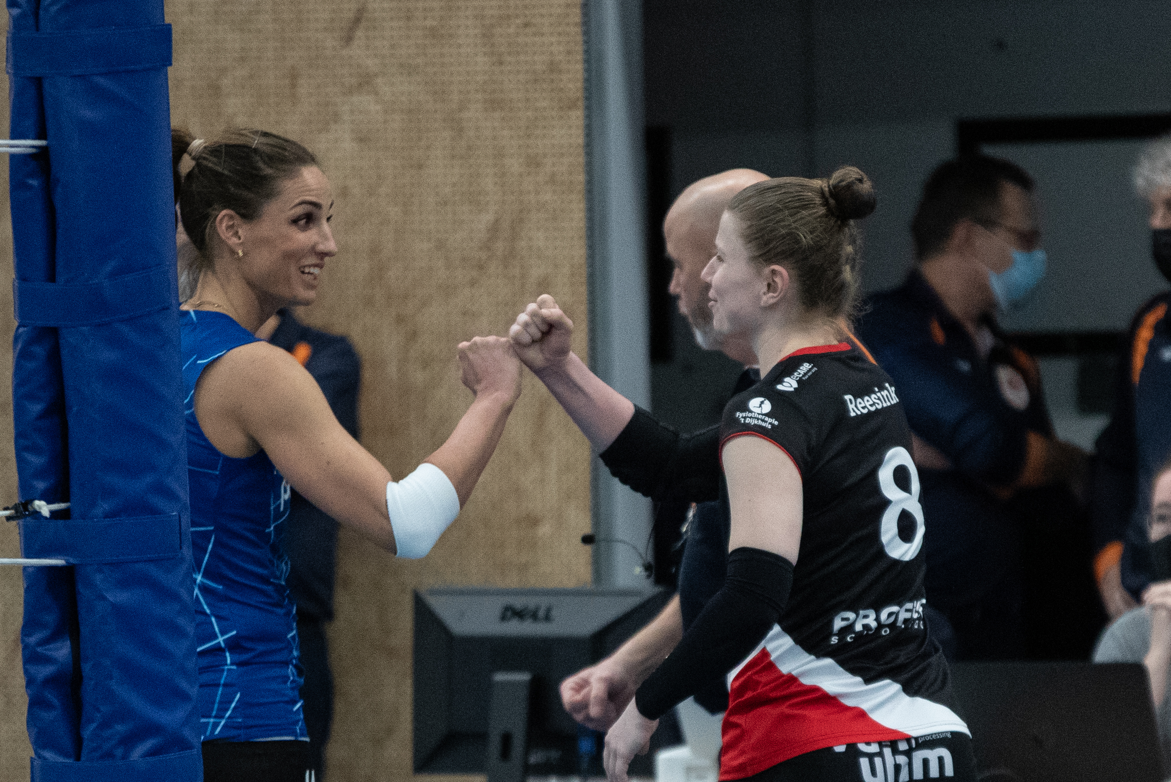 Via scores van Iris Vos en Demi Korevaar kon Team 22 op gelijke hoogte komen bij 16-16, na de 18-18 sloeg Apollo 8 uit (19-18) en ook de volgende side out (20-19) was middels een technische fout een kadootje. Met een ace, een in het net geslagen aanval en een score van Britte Stuut pakte Team 22 de 23-19 voorsprong, Daphne Knijff scoorde tegen (23-20), waarna Fleur Savelkoel de laatste twee punten voor haar rekening nam. Met een ace precies in het hoekje werd het 25-20 en 3-0.