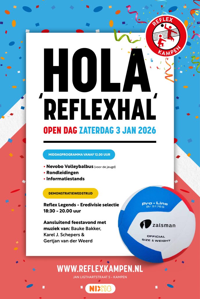 Namens bestuur en leden van Volleybal Vereniging Reflex. Tom van Dijk, Luc Hooisma, Berdien van den Burg, Gerben Schouten, de organisatie Open Dag, locatie: Sporthal Jan Ligthart, Jan Ligthartstraat 5 in Kampen
