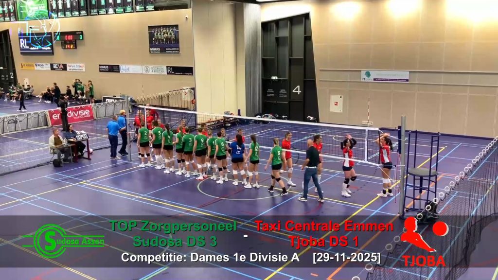 VoV, 01-12-2025. 6:49 uur. Bij deze de video-samenvatting van de kraker uit de 1e Divisie A bij de dames tussen TOP Zorgpersoneel Sudosa D3 vs Taxi Centrale Emmen Tjoba D1, waarbij de gasten de winstreeks van Sudosa D3 tot een einde brengen.
