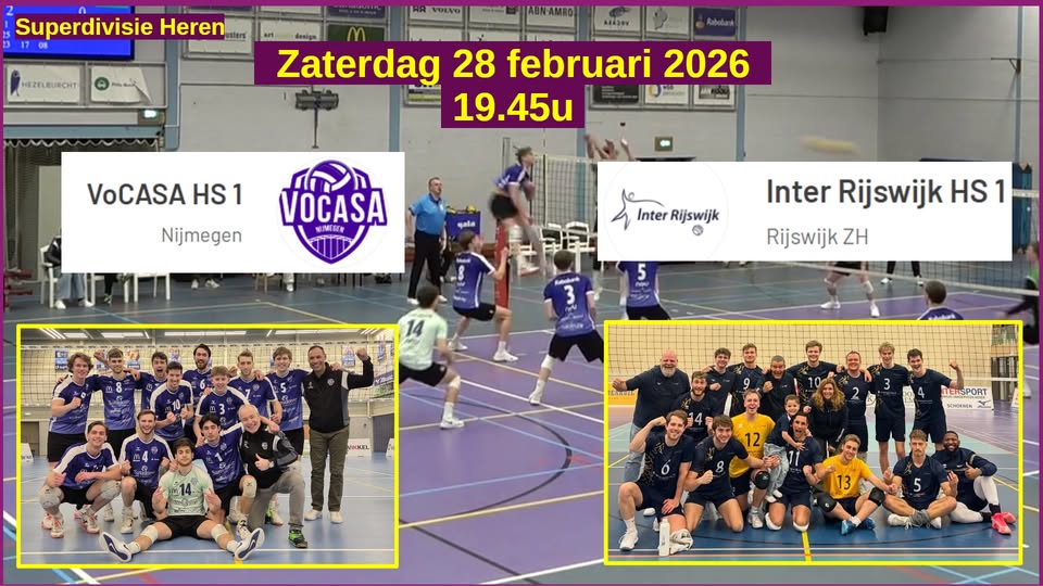 VoV, 01-03-2026. 6:39 uur. De topper in de Superdivisie mannen was gisteren het duel tussen VoCASA en Inter Rijswijk, de nummers één en twee van de ranglijst met een gelijk aantal punten bij het eerste fluitsignaal. In Rijswijk was VoCASA met 1-3 de sterkste ploeg gebleken, voor Rijswijk was er dus wat recht te zetten als VoCASA hen daaraan liet toekomen.