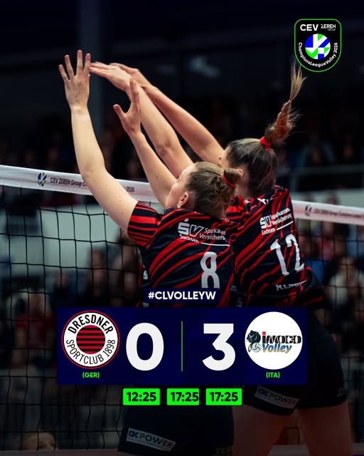 Jette Kuipers kon Dresden naar de 7-9 stand slaan in de derde set, Rosa Entius pakte ook een paar puntjes mee maar per saldo was het bij lange na niet voldoende om de koploper van de Serie A in Italië en titelverdediger in de Champions League te verslaan. Via 14-22 werd het na een foutserve van Dresden 17-25 en dus 0-3.