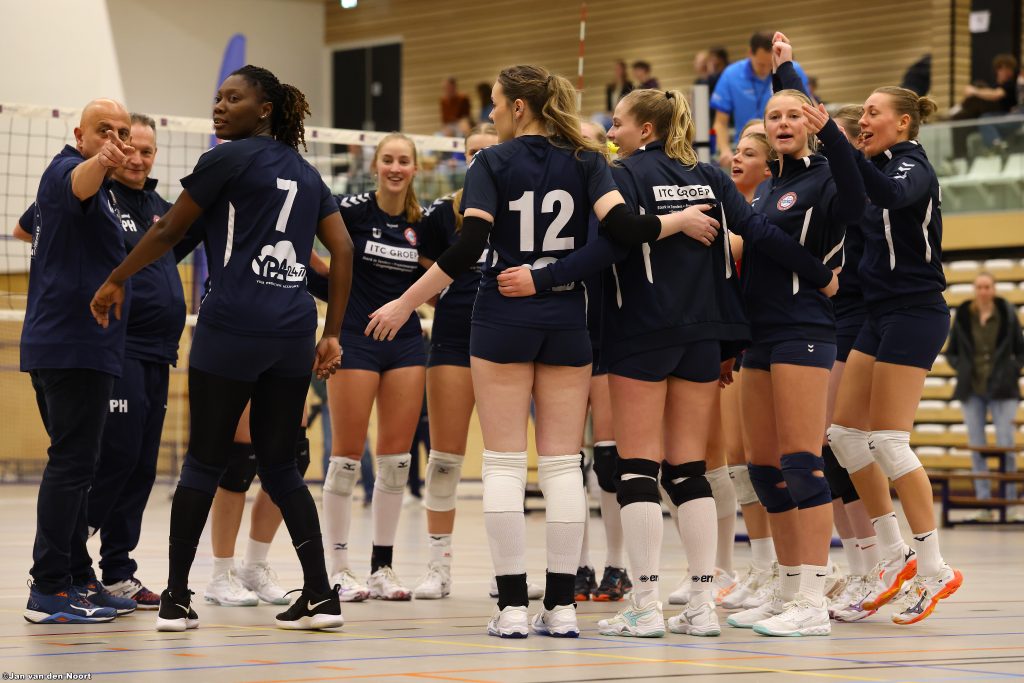 In de eerste set maakte Set-Up van 17-15 achter een 17-19 voorsprong en stond de leiding niet meer af. In set twee gingen de bezoekers uit Ootmarsum bij 10-15 nog ruim aan de leiding, de thuisploeg herstelde zich knap, nam over bij 19-17 en sloot met 25-20 af.