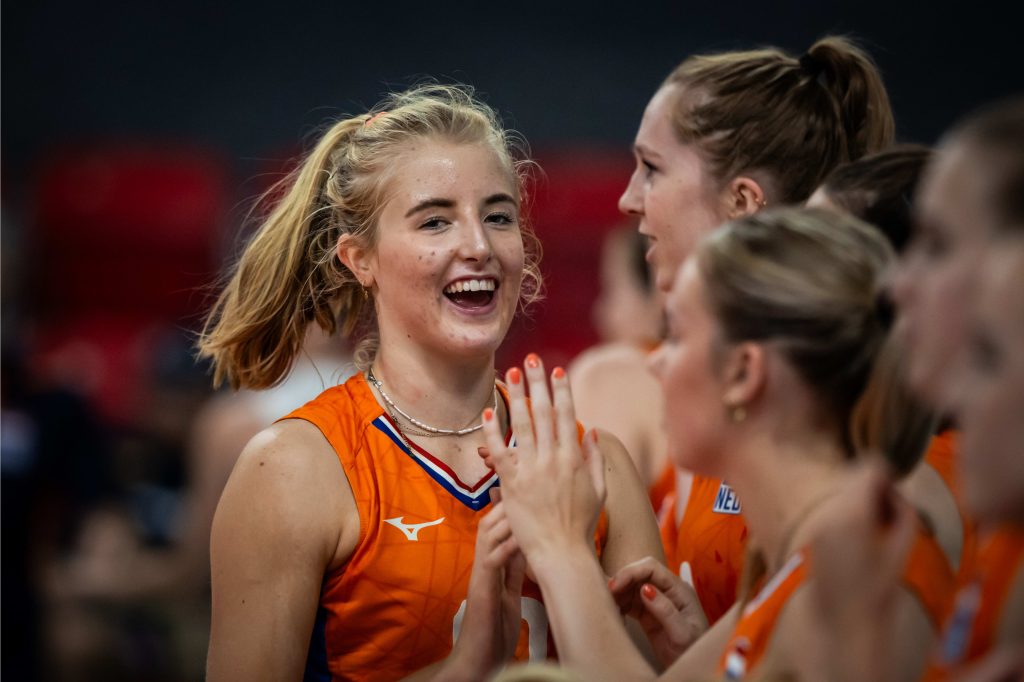 Bondscoach Eric Meijer stuurde Sanne Konijnenberg (spelverdeelster), Pippa Molenaar (libero), Nicole van de Vosse (diagonaal), Puck Hoogers, Louise Bijlsma (passer lopers) en Britte Stuut, Rixt van der Wal (midspeelsters) voor de laatste klus op dit WK het veld in als basis bij de eerste set. Eigenlijk was dit de vaste basis gedurende het hele toernooi.