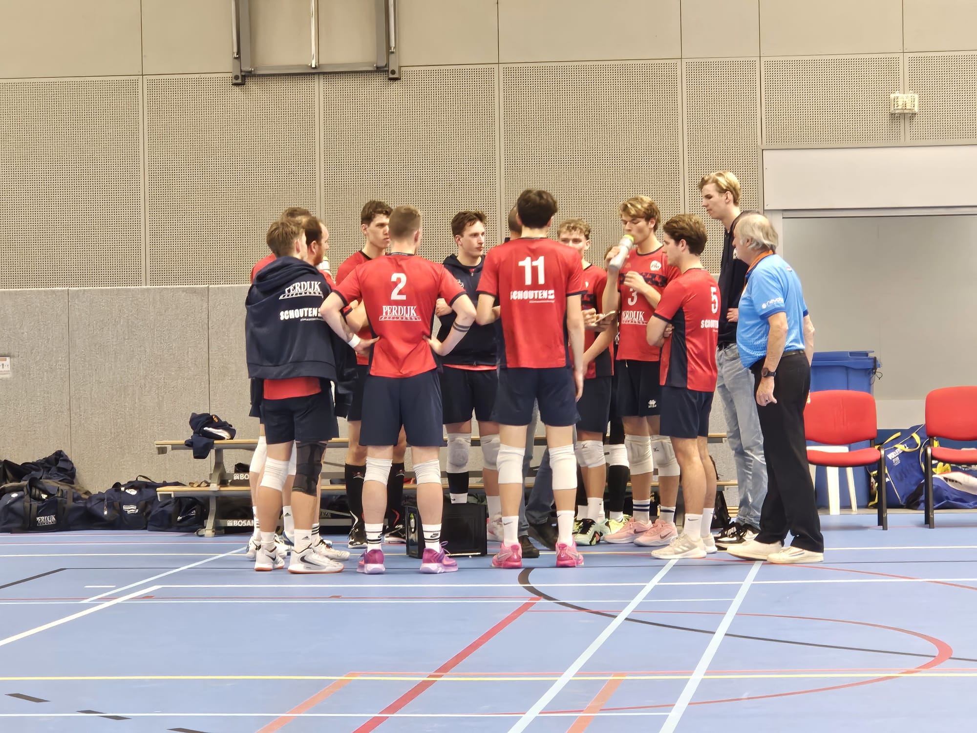 Trainer/coach Ed Bontrop werd nu geassisteerd door Ries Visser en begon de wedstrijd met Emanuel van Rangelrooij als setter, Jake Anfiloff op de diagonaal, Marc Prosman en Elwin Oskam als passer-loper en op het midden Julian Perdijk en Damian Lustig en libero Kyan Merkus.